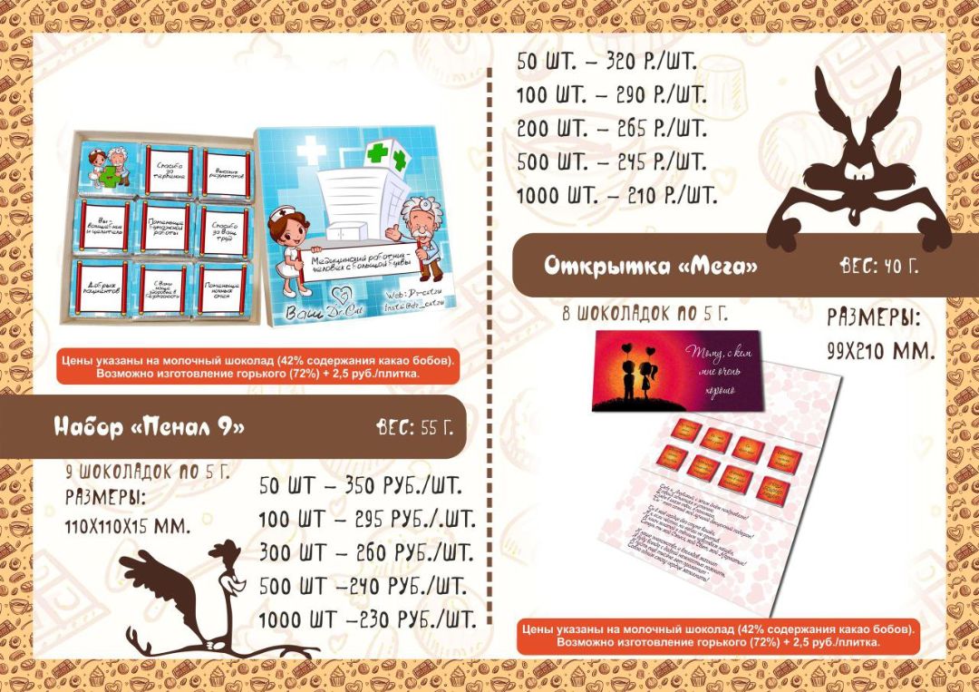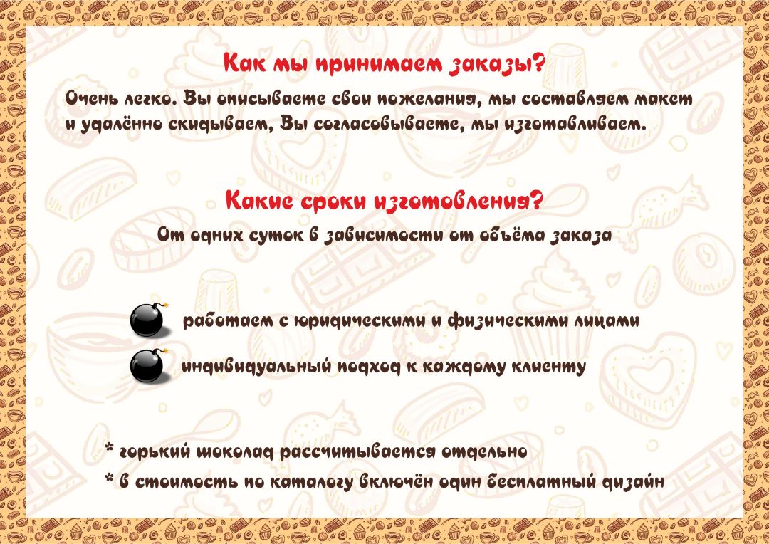 Наша команда изготавливает шоколадные плитки и шоколадные наборы с вашими фирменными изображениями, логотипами, фотографиями и надписями. Работаем с 2014 года.